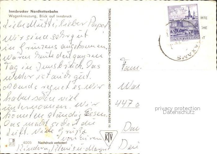 71935307 alte Postkarte Innsbruck Nordkettenbahn Wagenkreuzung postalisch gelaufen Erhaltung siehe scans KatCode: 11390332070101