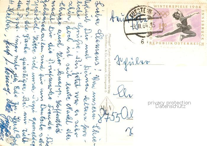73177031 alte Postkarte Innsbruck Olympia-Eisstadion postalisch gelaufen Erhaltung siehe scans [NatalD47] KatCode: 11390332070101