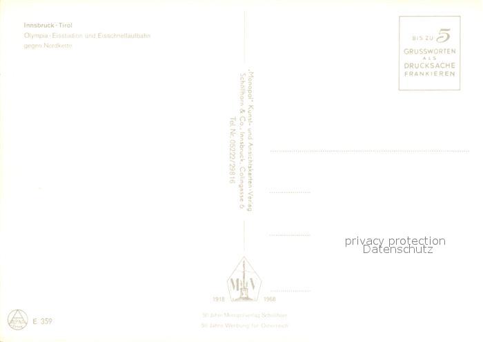 73245817 Innsbruck Olympia Eisstadion Eisschnellaufbahn gegen Nordkette postalisch nicht gelaufen Erhaltung siehe scans [FriedD77] KatCode: 11390332070101