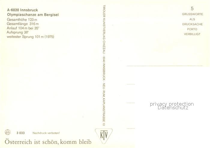 73242989 Innsbruck Olympiaschanze Bergisel postalisch nicht gelaufen Erhaltung siehe scans [KathaD81] KatCode: 11390332070101