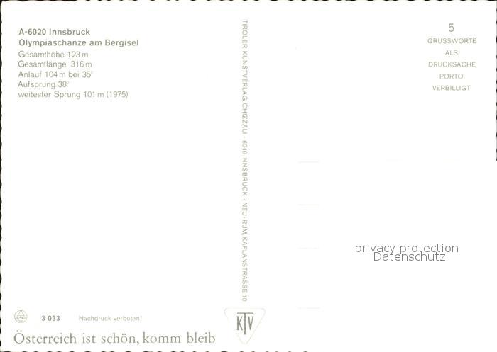 72104170 Innsbruck Olympischanze am Bergisel postalisch nicht gelaufen Erhaltung siehe scans KatCode: 11390332070101