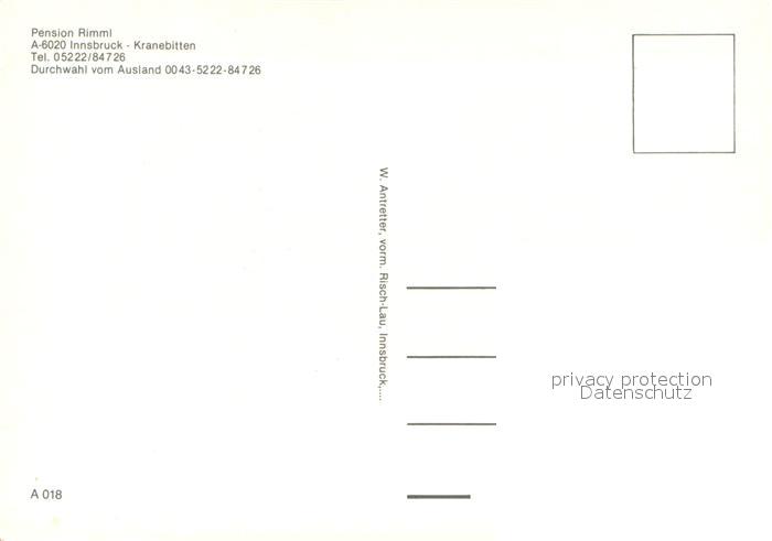 73657320 Innsbruck Pension Rimmi postalisch nicht gelaufen Erhaltung siehe scans [WerneD78] KatCode: 11390332070101