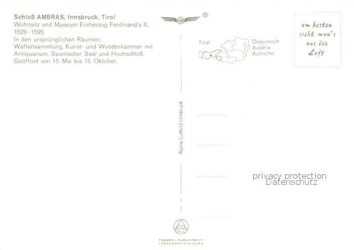 73245807 Innsbruck Schloss Ambras Fliegeraufnahme postalisch nicht gelaufen Erhaltung siehe scans [FriedD77] KatCode: 11390332070101