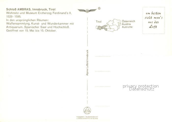 73162251 Innsbruck Schloss Ambras Fliegeraufnahme postalisch nicht gelaufen Erhaltung siehe scans [FriedD77] KatCode: 11390332070101