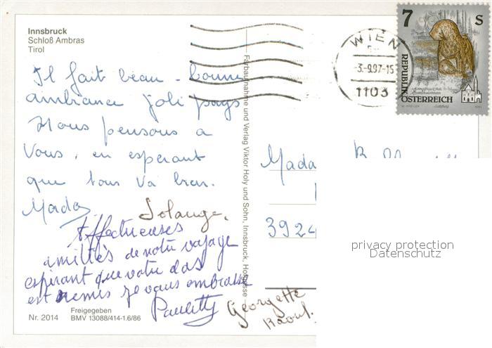 73687856 alte Postkarte Innsbruck Schloss Ambras Fliegeraufnahme postalisch gelaufen Erhaltung siehe scans [FriedD77] KatCode: 11390332070101