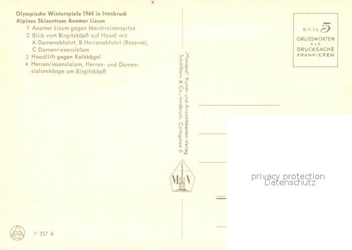 73125207 Innsbruck Sporthotel Olympia Axamer Lizum Birgitzkoepfi postalisch nicht gelaufen Erhaltung siehe scans [NatalD47] KatCode: 11390332070101