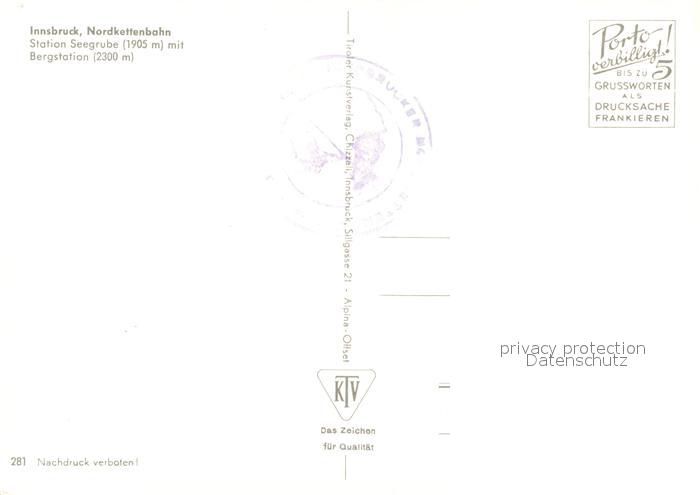 73093088 Innsbruck Station Seegrube Bergstation postalisch nicht gelaufen Erhaltung siehe scans [KathaD81] KatCode: 11390332070101