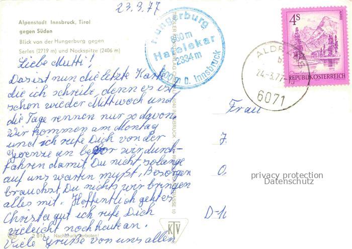 74111040 alte Postkarte INNSBRUCK Tirol AT Blick von der Hungerburg nach Serles und Nockspitze postalisch gelaufen Erhaltung siehe scans [WerneD78] KatCode: 11390332070101