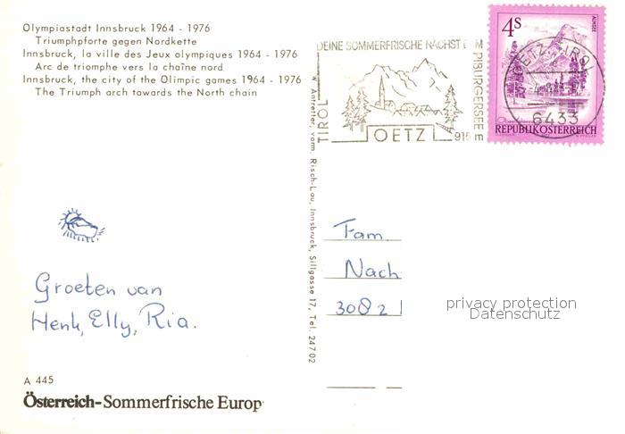 72901819 alte Postkarte Innsbruck Triumphpforte Nordkette postalisch gelaufen Erhaltung siehe scans [AndreD76] KatCode: 11390332070101