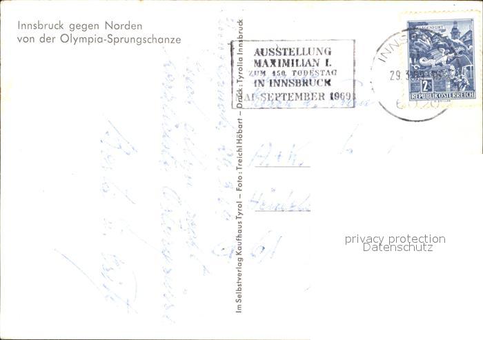 72071841 alte Postkarte Innsbruck Von der Olympia Sprungschanze postalisch gelaufen Erhaltung siehe scans KatCode: 11390332070101