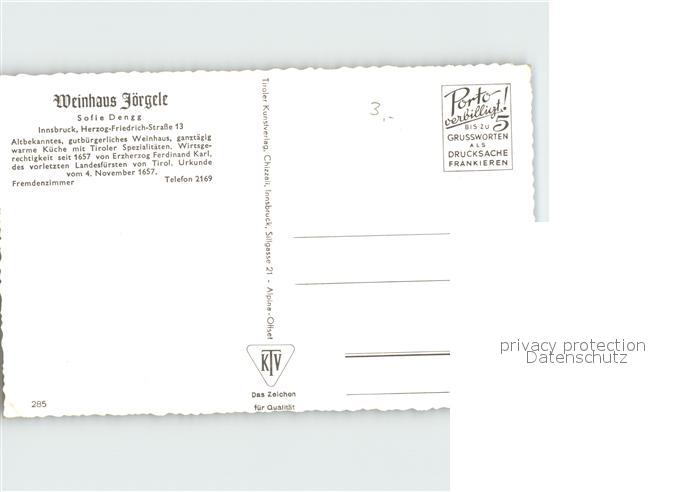 72198173 Innsbruck Weinhaus Joergele postalisch nicht gelaufen Erhaltung siehe scans KatCode: 11390332070101