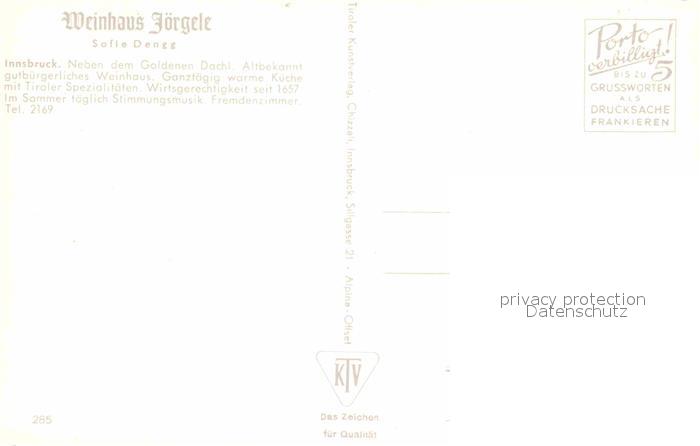 72895653 Innsbruck Weinhaus Joergele Goldenes Dachl postalisch nicht gelaufen Erhaltung siehe scans [WerneD78] KatCode: 11390332070101
