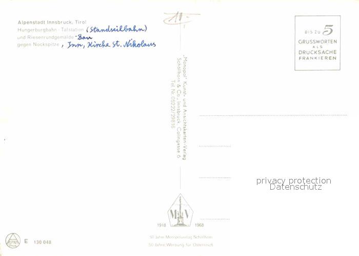 72916011 Innsbruck Zahnradbahn Nocksptize Talstation postalisch nicht gelaufen Erhaltung siehe scans [NatalD47] KatCode: 11390332070101