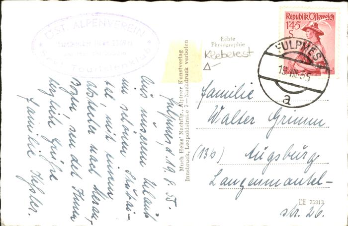 71063019 alte Postkarte Innsbruckerhuette Tirol postalisch gelaufen KatCode: 11390332070334