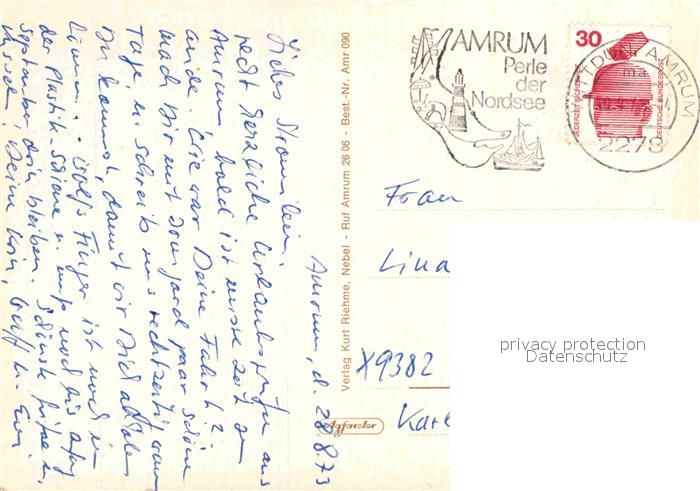 72759446 alte Postkarte Insel Amrum Duenen Strand Leuchtturm Windmuehle Hafen Promenade Fliegeraufnahme postalisch gelaufen Erhaltung siehe scans [FriedD77] KatCode: 11110001054085
