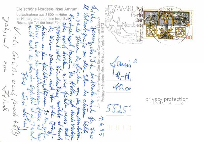 72779736 alte Postkarte Insel Amrum Nordseeinsel im Hintergrund Insel Sylt Insel Foehr Luftaufnahme aus 3500 m Hoehe postalisch gelaufen Erhaltung siehe scans [FriedD77] KatCode: 11110001054085