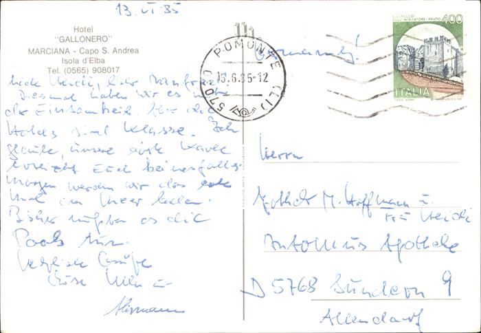 old postcard Insel Elba Hotel Gallonero postalisch gelaufen Erhaltung siehe scans
