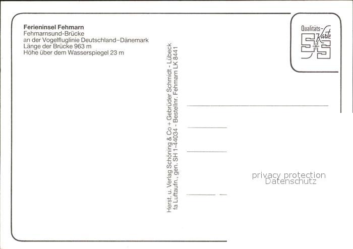 72427990 Insel Fehmarn Fliegeraufnahme Fehmarnsund-Bruecke postalisch nicht gelaufen Erhaltung siehe scans KatCode: 11110001055046