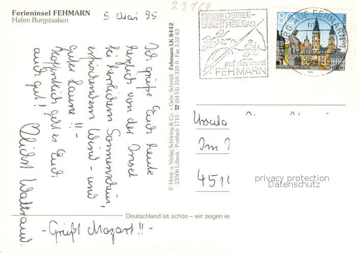 73540882 alte Postkarte Insel Fehmarn Fliegeraufnahme mit Hafen Burgstaaken postalisch gelaufen Erhaltung siehe scans [WerneD78] KatCode: 11110001055046