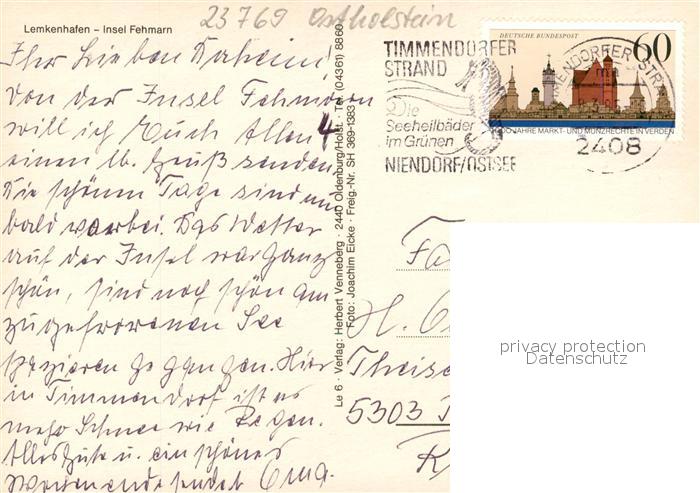 73322976 alte Postkarte Insel Fehmarn Fliegeraufnahme mit Lemkenhafen postalisch gelaufen Erhaltung siehe scans [WerneD78] KatCode: 11110001055046
