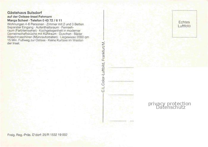 74009518 Insel Fehmarn Gaestehaus Sulsdorf Fliegeraufnahme postalisch nicht gelaufen Erhaltung siehe scans [WerneD78] KatCode: 11110001055046