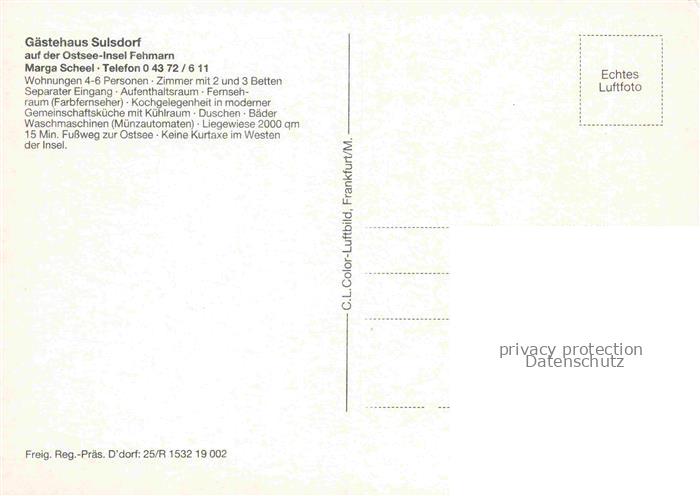 74023685 Insel Fehmarn Gaestehaus Sulsdorf postalisch nicht gelaufen Fliegeraufnahme Erhaltung siehe scans [FriedD77] KatCode: 11110001055046
