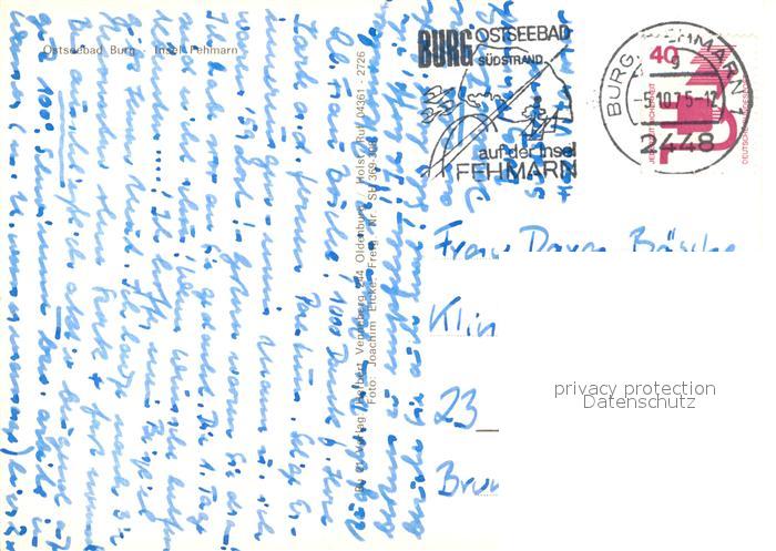 73158875 alte Postkarte Insel Fehmarn Ostseebad Burg postalisch gelaufen Erhaltung siehe scans [KathaD81] KatCode: 11110001055046