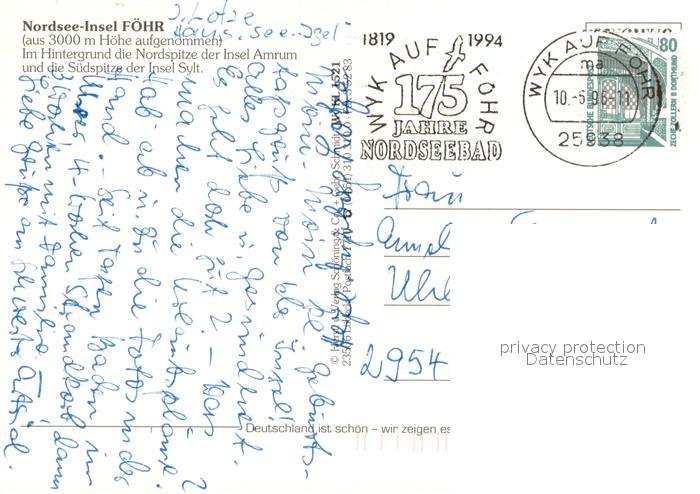 73744817 alte Postkarte Insel Foehr Fliegeraufnahme postalisch gelaufen Erhaltung siehe scans [FriedD77] KatCode: 11110001054164