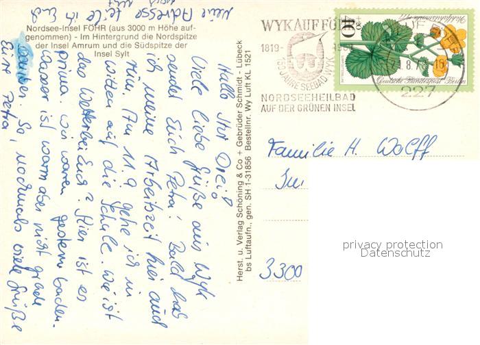 73668437 alte Postkarte Insel Foehr Fliegeraufnahme postalisch gelaufen Erhaltung siehe scans [WerneD78] KatCode: 11110001054164