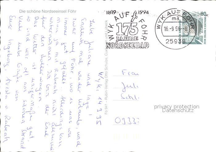 72447779 alte Postkarte Insel Foehr Friesenhaus in Oldsum Kirche Wyker-Strand Haeberlinstrasse Wittumer-Muehle postalisch gelaufen Erhaltung siehe scans KatCode: 11110001054164