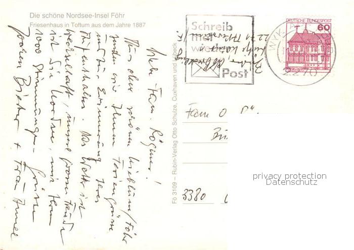 73125667 alte Postkarte Insel Foehr Friesenhaus in Toftum postalisch gelaufen Erhaltung siehe scans [LiesaD40] KatCode: 11110001054164