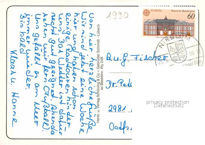 72860307 alte Postkarte Insel Foehr Kirche Windmuehle Friesenhaus Trachtengruppe postalisch gelaufen Erhaltung siehe scans [WerneD78] KatCode: 11110001054164