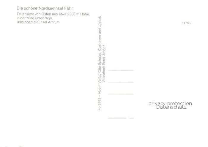 73618421 Insel Foehr mit Nordseeinsel Amrum Fliegeraufnahme postalisch nicht gelaufen Erhaltung siehe scans [FriedD77] KatCode: 11110001054164