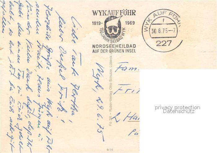 73574386 alte Postkarte Insel Foehr Muehle Wrixum Rosenhaus Nieblum MS Schleswig Holstein Strand postalisch gelaufen Erhaltung siehe scans [FriedD77] KatCode: 11110001054164