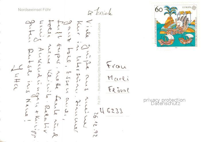 73242101 alte Postkarte Insel Foehr Wrixumer-Muehle Landungsbruecke Friesenhaeuser Suedstrand Wyk postalisch gelaufen Erhaltung siehe scans [LiesaD40] KatCode: 11110001054164