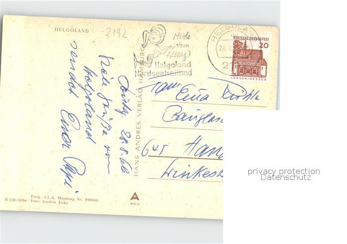 72014430 alte Postkarte Insel Helgoland Fliegeraufnahme postalisch gelaufen Erhaltung siehe scans KatCode: 11110001056025
