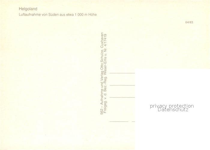 73159351 Insel Helgoland Luftaufnahme von Sueden aus etwa 1000 m Hoehe postalisch nicht gelaufen Erhaltung siehe scans [FriedD77] KatCode: 11110001056025