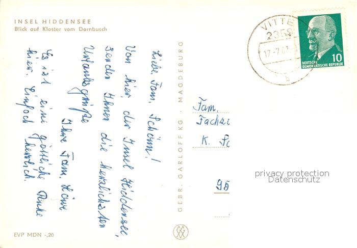 73549362 alte Postkarte Insel Hiddensee Blick auf Kloster vom Dornbusch postalisch gelaufen Erhaltung siehe scans [WerneD78] KatCode: 11110013061017