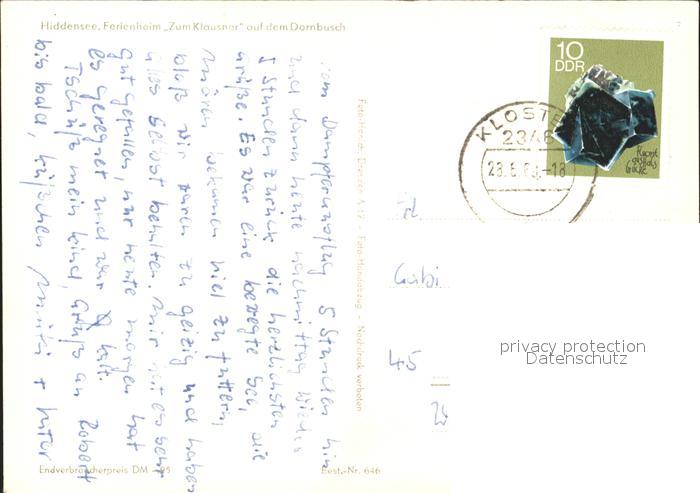 72030444 alte Postkarte Insel Hiddensee Ferienheim Zum Klausner Dornbusch postalisch gelaufen Erhaltung siehe scans KatCode: 11110013061017