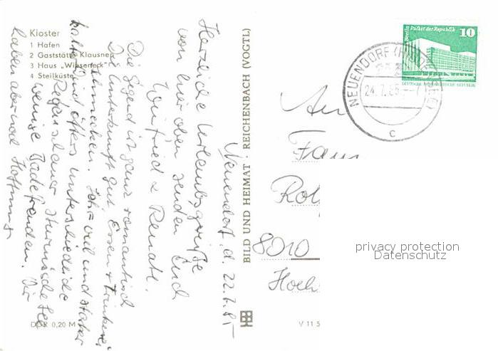 72640371 alte Postkarte Insel Hiddensee Hafen Gaststaette Klausner Haus Wieseneck Steilkueste postalisch gelaufen Erhaltung siehe scans [WerneD78] KatCode: 11110013061017