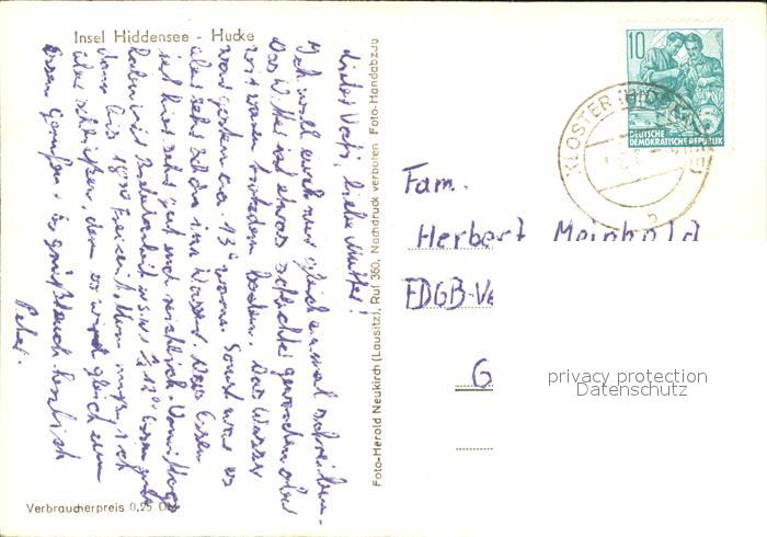 72377106 alte Postkarte Insel Hiddensee Hucke postalisch gelaufen Erhaltung siehe scans KatCode: 11110013061017