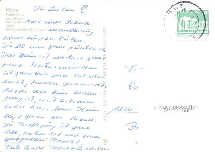 72023489 alte Postkarte Insel Hiddensee Kloster Fischerhaus Anlegestelle Hafen postalisch gelaufen Erhaltung siehe scans KatCode: 11110013061017