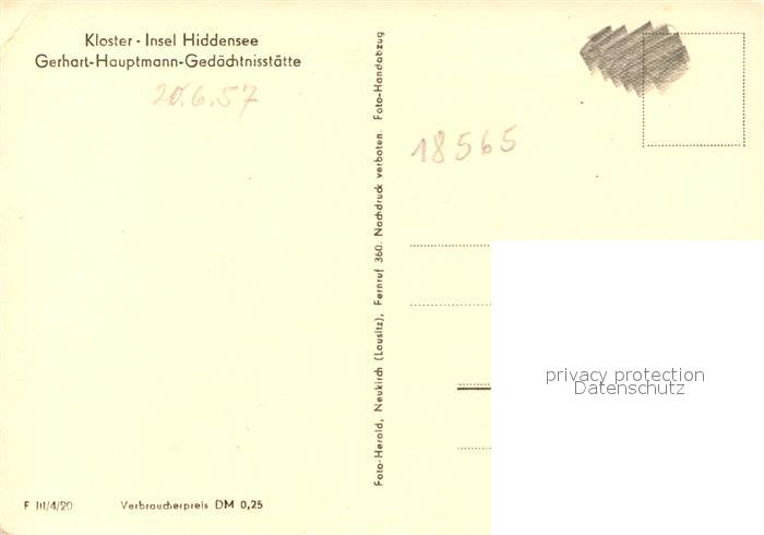 73101949 Insel Hiddensee Kloster Gerhart Hauptmann Gedaechtnisstaette postalisch nicht gelaufen Erhaltung siehe scans [KathaD81] KatCode: 11110013061017