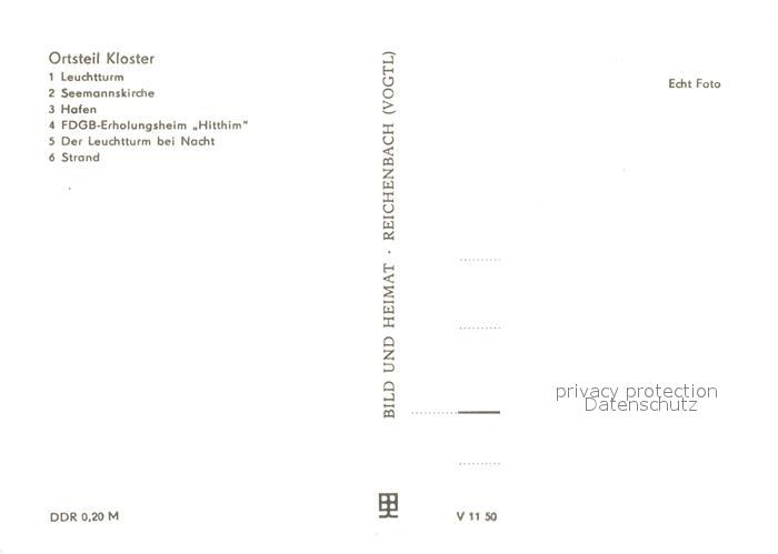 73049693 Insel Hiddensee Kloster Leuchtturm Seemannskirche Hafen Erholungsheim Hitthim postalisch nicht gelaufen Erhaltung siehe scans [PaolaD17] KatCode: 11110013061017