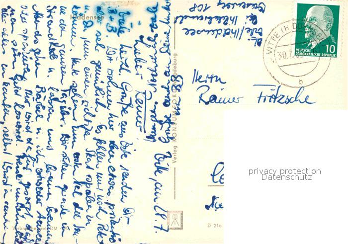 72633017 alte Postkarte Insel Hiddensee Kloster Neuendorf Hafen Badenixen Haus Gerhart Hauptmanns Vitte Dampfer postalisch gelaufen Erhaltung siehe scans [FriedD77] KatCode: 11110013061017