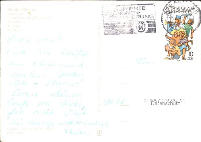 72032773 alte Postkarte Insel Hiddensee Leuchtturm Ferienhaus Kueste Hafen Fischkutter postalisch gelaufen KatCode: 11110013061017