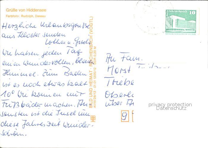 72383099 alte Postkarte Insel Hiddensee Reetdachhaeuser postalisch gelaufen Erhaltung siehe scans KatCode: 11110013061017