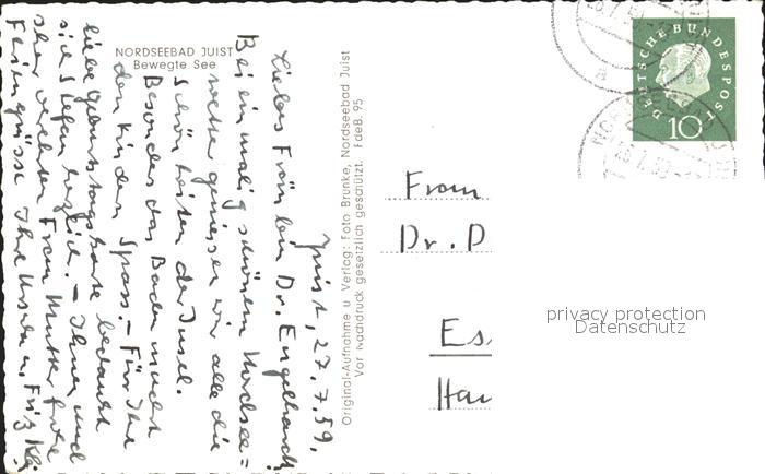 72193410 alte Postkarte Insel Juist Bewegte See Duenen postalisch gelaufen Erhaltung siehe scans KatCode: 11110003452020