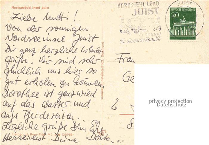 74130839 Insel Juist Fliegeraufnahme postalisch gelaufen Erhaltung siehe scans [WerneD78] alte Postkarte Wern Katcode 11110003452020