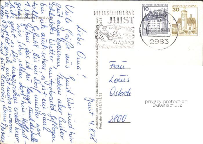 72580725 alte Postkarte Insel Juist Nordseeheilbad Luftaufnahme postalisch gelaufen Erhaltung siehe scans [KathaD79] KatCode: 11110003452020
